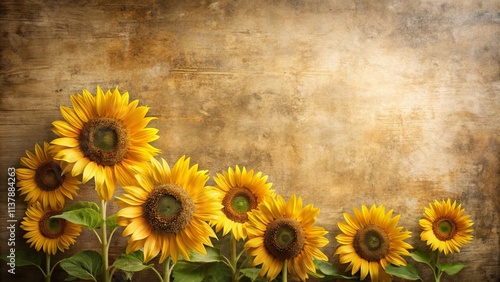 © Mali, Obraz premium Rustic Autumnal Background Featuring a Row of Vibrant Sunflowers