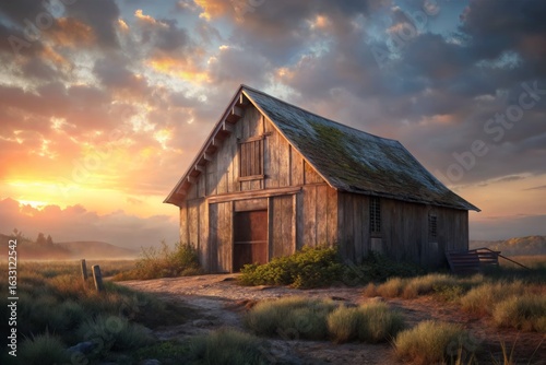 © Arethaawykoff, Obraz premium Rustic Barn at Sunset
