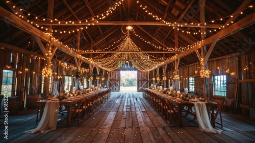 © bashkirovaphoto, Fototapeta premium Rustic barn wedding with charming decor