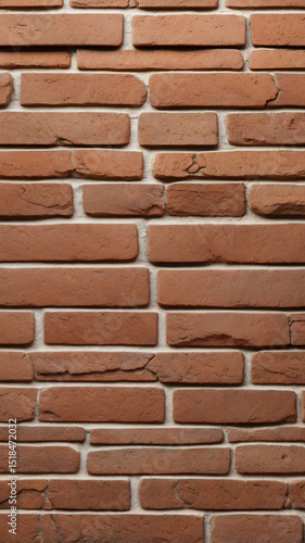 © Sehrish, Obraz premium Rustic Beige Brick Wall in Running Bond Pattern – Textured Stone Finish