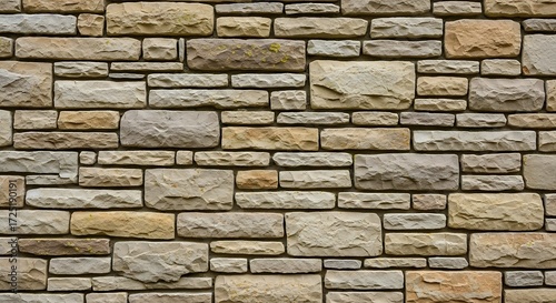 © mizanur, Fototapeta premium Rustic Beige Stacked Stone Wall Texture: Seamless Background for Design Projects