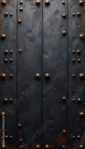 Fototapeta premium Rustic black metal door with rivets and rust accents