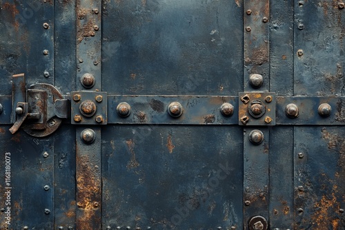 Fototapeta premium Rustic blue metal door with rivets and latch.