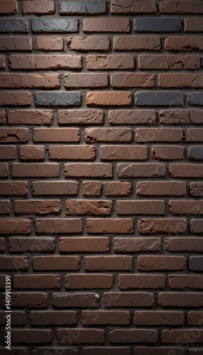 © heinng, Obraz premium Rustic Brick Wall Texture Dark Warm Light. AI Generated