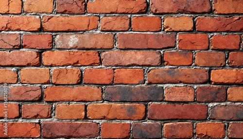 © Farid Nisuki, Obraz premium Rustic Brick Wall Texture with Red and Orange Tones for Design