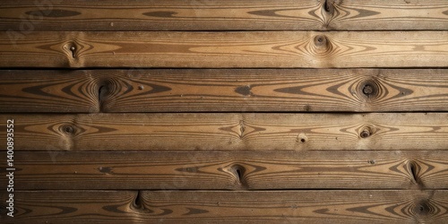 © Chalisa, Naklejka premium Rustic Brown Wooden Planks with Knots and Grain Detail A Textured Background Image Perfect for Design Projects
