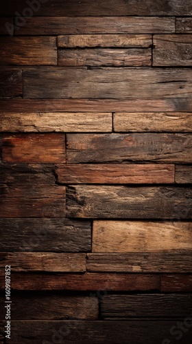© Rayyanza, Obraz premium Rustic Brown Wooden Wall Paneling Texture
