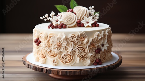 © Salman, Fototapeta premium Rustic buttercream cake with "Happy Birthday" piped on top using a classic piping tip to create a beautiful cursive writing.