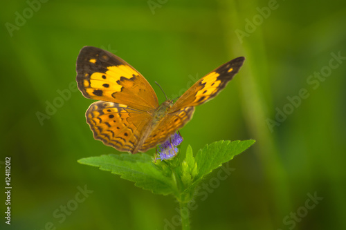 © nemorest, Fototapeta premium Rustic butterfly, Cupha erymanthis on wild weed flower.