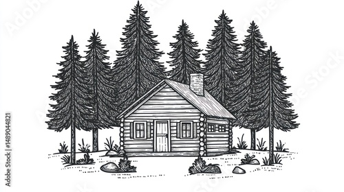Fototapeta premium Rustic cabin in woods, peaceful retreat, nature backdrop, ideal for travel...