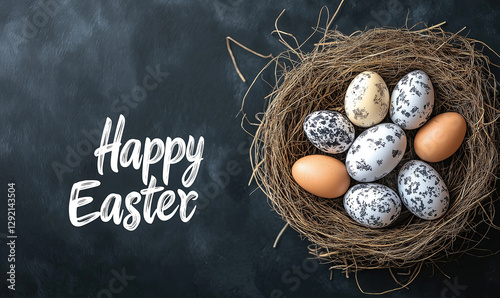 Obraz premium Rustic Celebration: Traditional Easter Nest Against Dramatic Backdrop