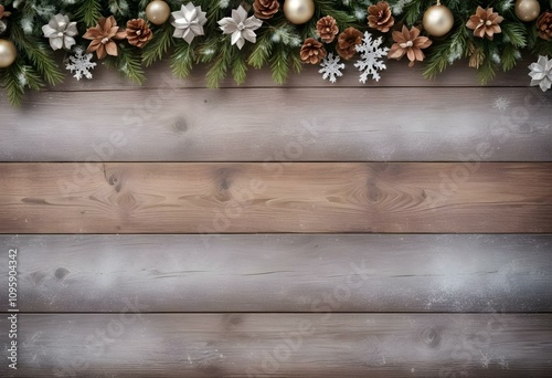Fototapeta premium Rustic Christmas-themed backgrounds featuring natural elements such as wood...