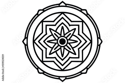 © AFSHANASUFIA, Fototapeta premium Rustic circular mandala icon with tribal patterns