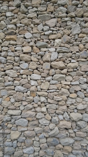 Obraz premium Rustic cobblestone wall with rounded gray and brown stones