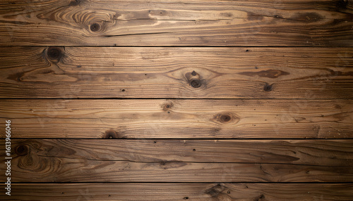 © Yshfrn, Naklejka premium Rustic Dark Brown Wooden Planks Background with Grain and Knots