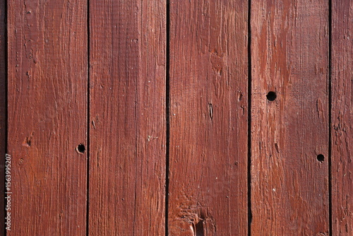 © Jekaterina, Naklejka premium Rustic Dark Red Wooden Planks with Visible Grain and Nails