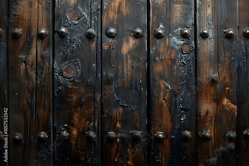 Fototapeta premium Rustic Dark Wood Paneling with Decorative Nails