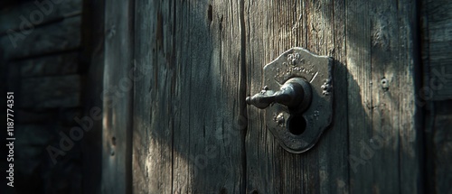 Fototapeta premium Rustic door handle, old wood, sunlight