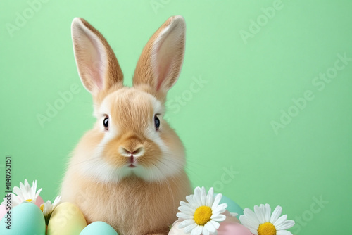 © Pakamas, Obraz premium Rustic Easter Scene Featuring an American Fuzzy Lop Rabbit