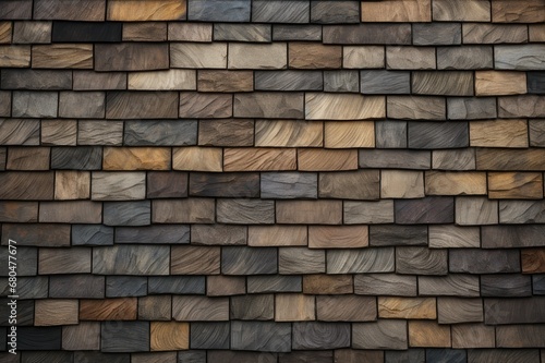 Obraz premium Rustic Elegance: Wooden Slate Shingles Texture, generative AI