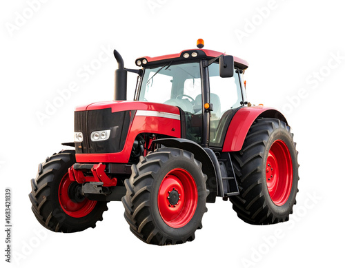© Sukhi, Obraz premium Rustic Farm Scene with Red Tractor and Seasonal Harvest Props
