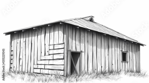 Obraz premium Rustic Farm Structure: A vintage wooden farm structure, rendered in detailed grayscale, hints at a history of rural life and hard work. A nostalgic tribute to a bygone era