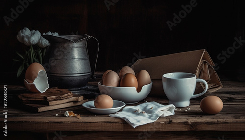 © Grgroup, Obraz premium Rustic farm table holds organic meal preparation generated by AI