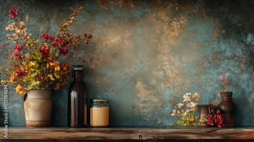 © Sandu, Naklejka premium Rustic Floral Still Life Backdrop