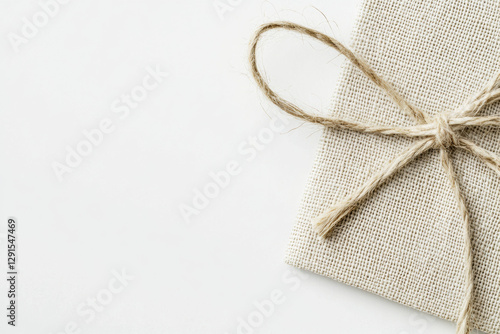 © smth.design, Fototapeta premium Rustic Gift Wrapped in Burlap with Twine Bow on White Background