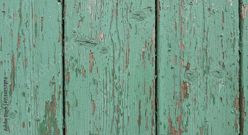 © SAFIICLON, Naklejka premium Rustic Green Wooden Texture Weathered Paint on Vertical Planks