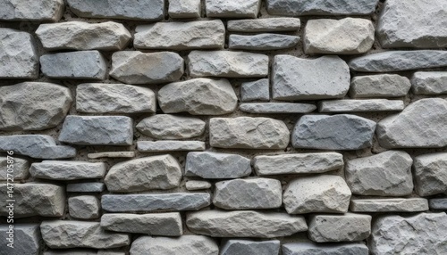 © aulia, Fototapeta premium Rustic Grey Stone Wall Texture: A Close-Up View of Irregularly Shaped Stones Arranged in a Wall