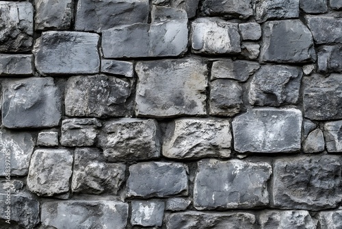 Obraz premium Rustic Grey Stone Wall Texture with Irregularly Shaped Blocks and Subtle Blue...