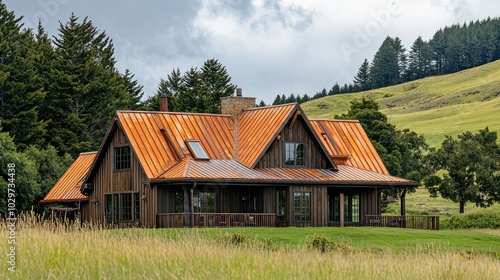 Obraz premium Rustic Home with Copper Roof and Serene View
