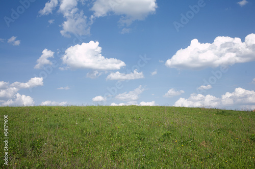 © DyMaxFoto, Fototapeta premium Rustic landscape with meadow and beautiful sky with clouds