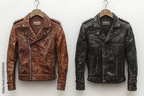 Naklejka premium Rustic Leather Outerwear Collection On Hangers high resolution picture