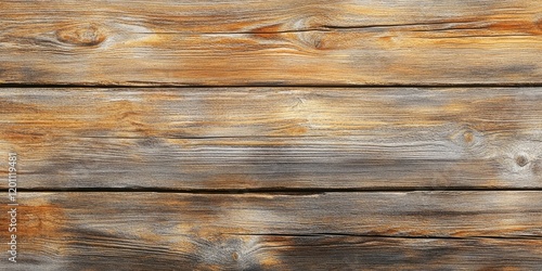 Fototapeta premium Rustic light brown weathered wooden texture with varied grain patterns and warm tones centered in a panoramic layout ideal for backgrounds