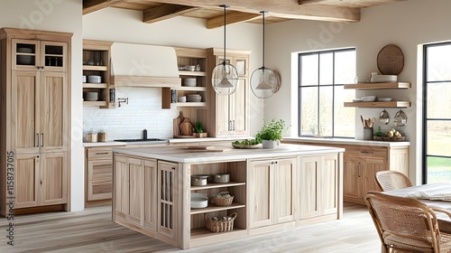 Fototapeta premium Rustic Light Wood Kitchen Design with Island and Farmhouse Style
