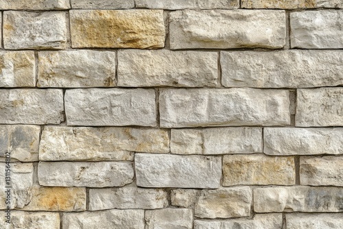 © Larysa, Fototapeta premium Rustic limestone wall close-up with earthy tones. AI image