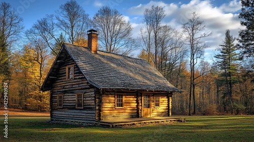 © God's blessing, Obraz premium Rustic log cabin in autumn
