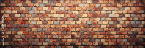 © deFusum, Fototapeta premium Rustic multicolored brick wall with weathered stone texture