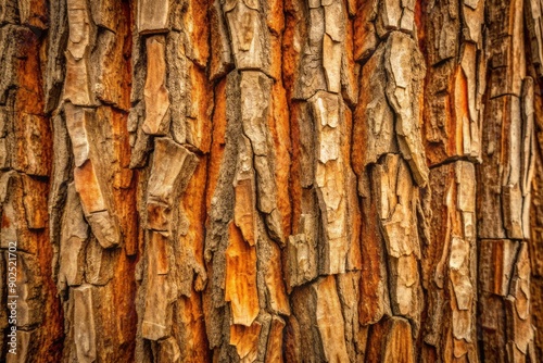 © Sirinporn, Obraz premium Rustic, natural, and earthy, this untreated tree bark texture features intricate patterns and grooves, perfect for a unique and organic background or design element.