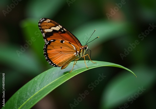 © Michael, Fototapeta premium Rustic Orange Butterfly: Jewel of the Green AI Generated
