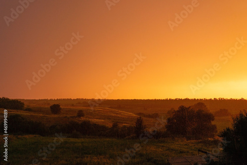 Obraz premium rustic orange sunset ukrainian sunset landscape gradient cloudy sky