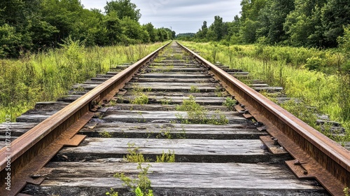 © Trisa, Fototapeta premium Rustic Railroad Tracks Vanishing Rural Landscape