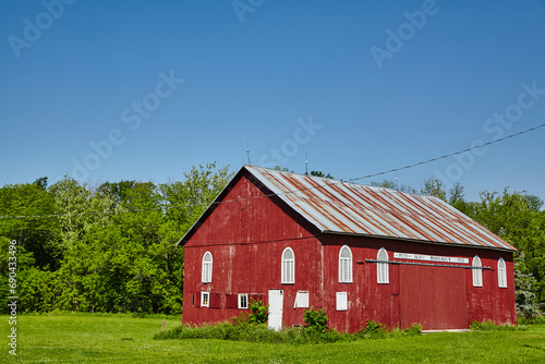 © Nicholas J. Klein, Obraz premium Rustic Red Barn Amidst Greenery in Fort Wayne, Indiana