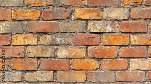 © Monchisa, Obraz premium Rustic Red Brick Wall, expansive view of weathered red brick masonry, showcasing texture and character, perfect for backgrounds in design and creative projects