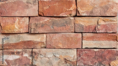 Fototapeta premium Rustic Red Stone Wall with Natural Texture and Warm Tones