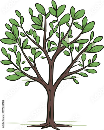 © Rahul, Obraz premium Rustic Reflection Hand-Drawn Tree Vector MirrorWhispering Woods Illustrated Tree Vector Tales