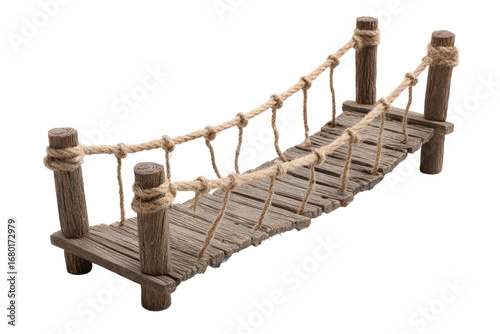 © Аrtranq, Naklejka premium Rustic Rope Suspension Footbridge Model on Transparent Background