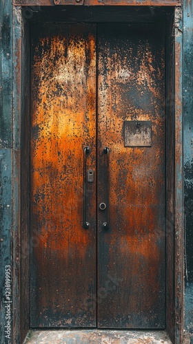 Fototapeta premium Rustic Steel Door with Weathered Texture and Rusty Finish